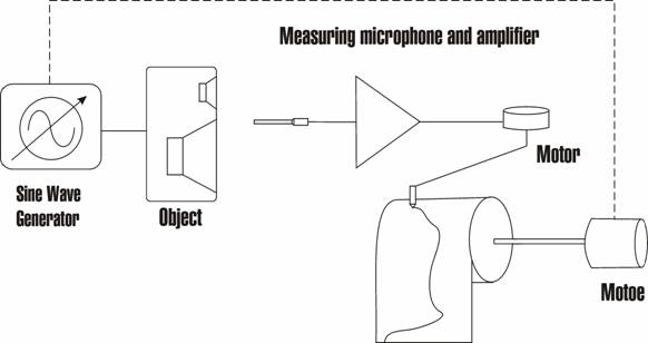 如圖所示,繪圖機(jī)可繪出響應(yīng)曲線。如果把[帶通濾波器](中頻可與訊號(hào)發(fā)生器之頻率同步改變)連接于麥克風(fēng)與繪圖機(jī)之間,在密閉室里,有可能過(guò)度移除室內(nèi)反射音,而獲得自由音場(chǎng)之測(cè)試值。此原理即為T(mén)DS。