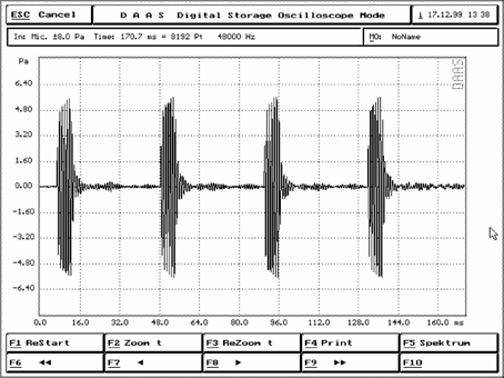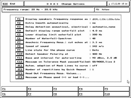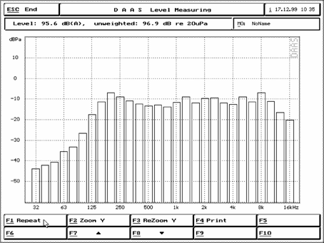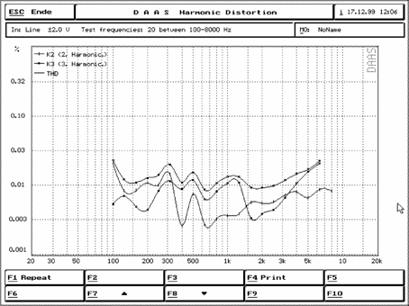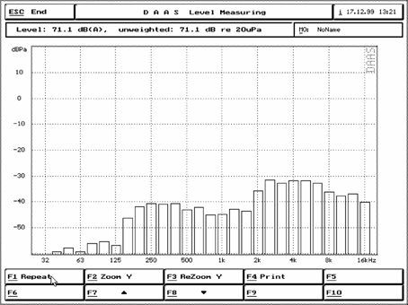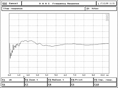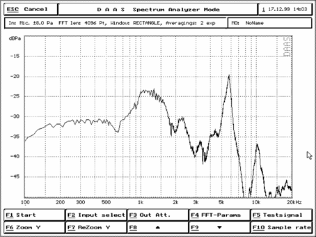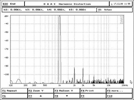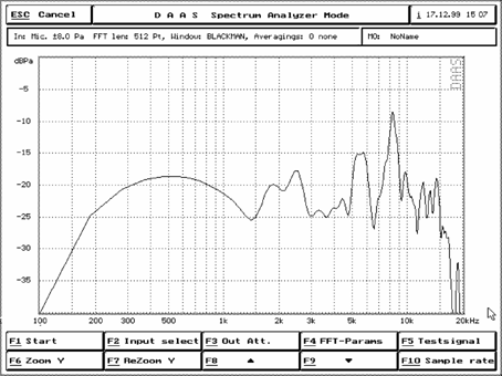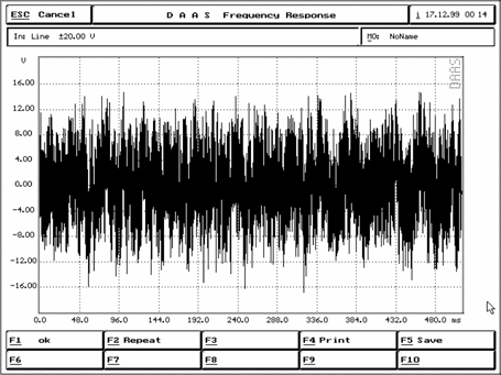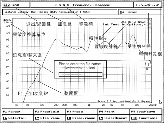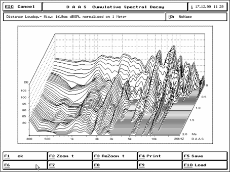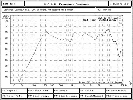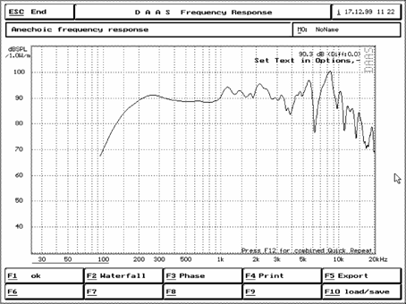 使用DAAS數(shù)字訊號(hào)處理,只要測(cè)量?jī)纱危诙潭處酌腌姾?,即可測(cè)出揚(yáng)聲器、分音器、或擴(kuò)大機(jī)等之頻率響應(yīng)曲線。在專(zhuān)業(yè)應(yīng)用上也可繪制出對(duì)數(shù)型響應(yīng)曲線,或以Terz(1/3 Octave)刻度表示之。