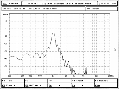 欲改變自動(dòng)讀取頻響曲線上特定點(diǎn)的頻率,可在主菜單[F10]中選擇[F9],再修改[F11]頻率值。如此在每次測(cè)試之際,會(huì)自動(dòng)在屏幕畫(huà)面上方出現(xiàn)該頻率點(diǎn)之靈敏度。