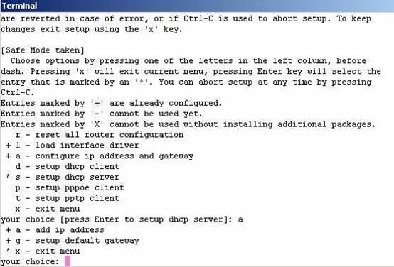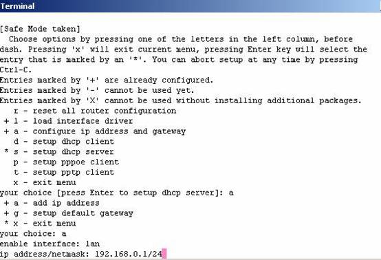 3再選a 添加一個IP地址,這時會詢問你哪一個接口,一般是直接回車,再輸入一個IP和子網(wǎng)掩碼