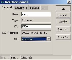 6先在interface 中 把兩個接口改名 wan 和lan 便于辨認(rèn),原來的wan 口是灰色的,打上勾啟動起來。