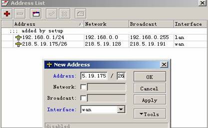 7選IP ---address 點(diǎn)+號添加一個Ip,子網(wǎng)掩碼用10進(jìn)制,比如255.255.255.252就是30 (30個1),接口選wan
