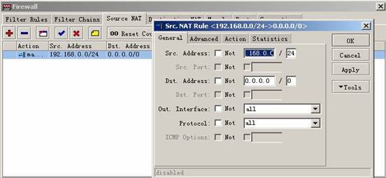 9選IP ---Firewall,在source NAT 中加入內(nèi)網(wǎng)網(wǎng)段,在general 的src address 中輸內(nèi)網(wǎng)網(wǎng)段,多個網(wǎng)段可加多個