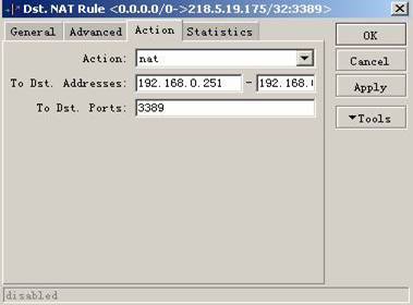 在Action 中輸內(nèi)網(wǎng)ip 端口, action 選 nat